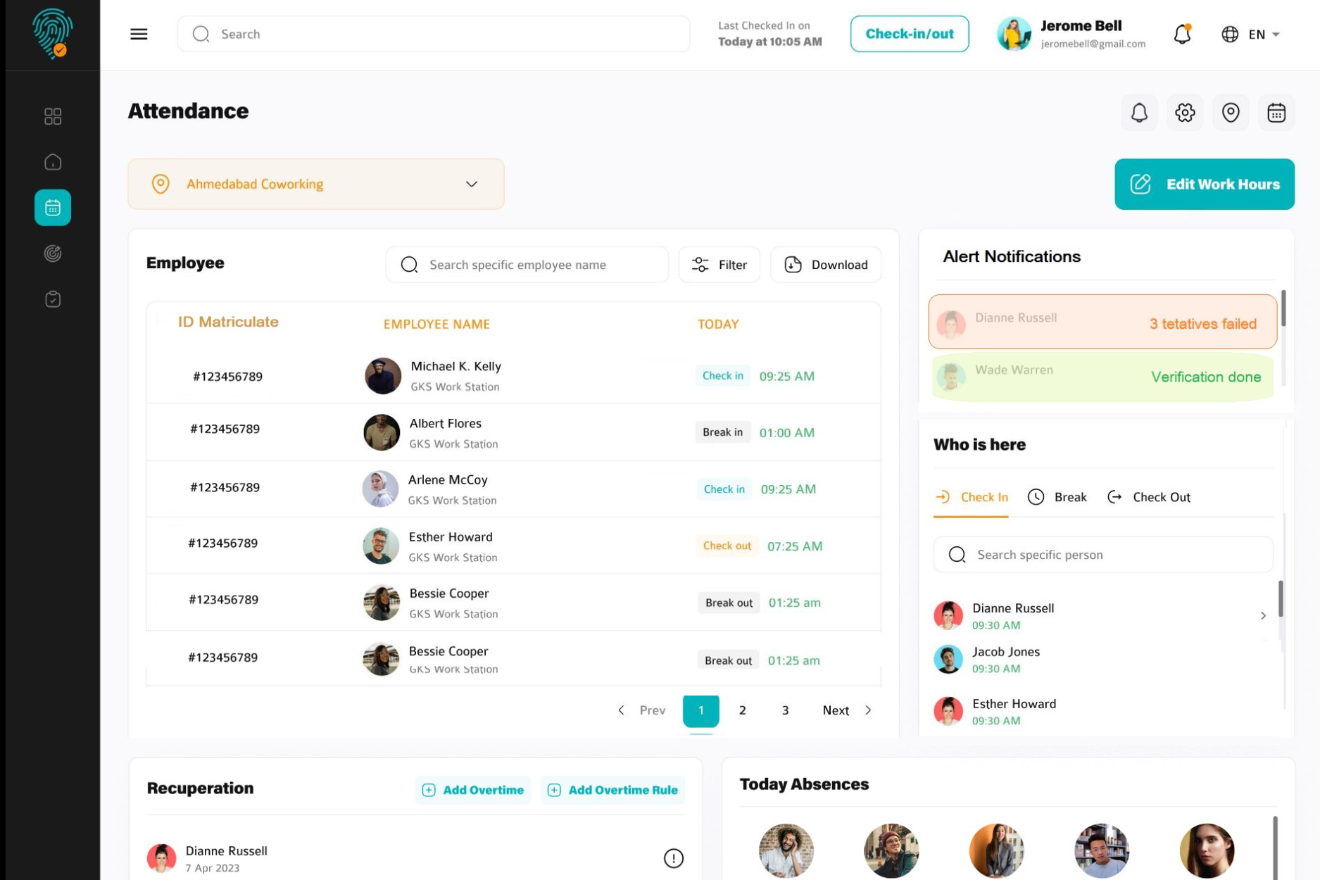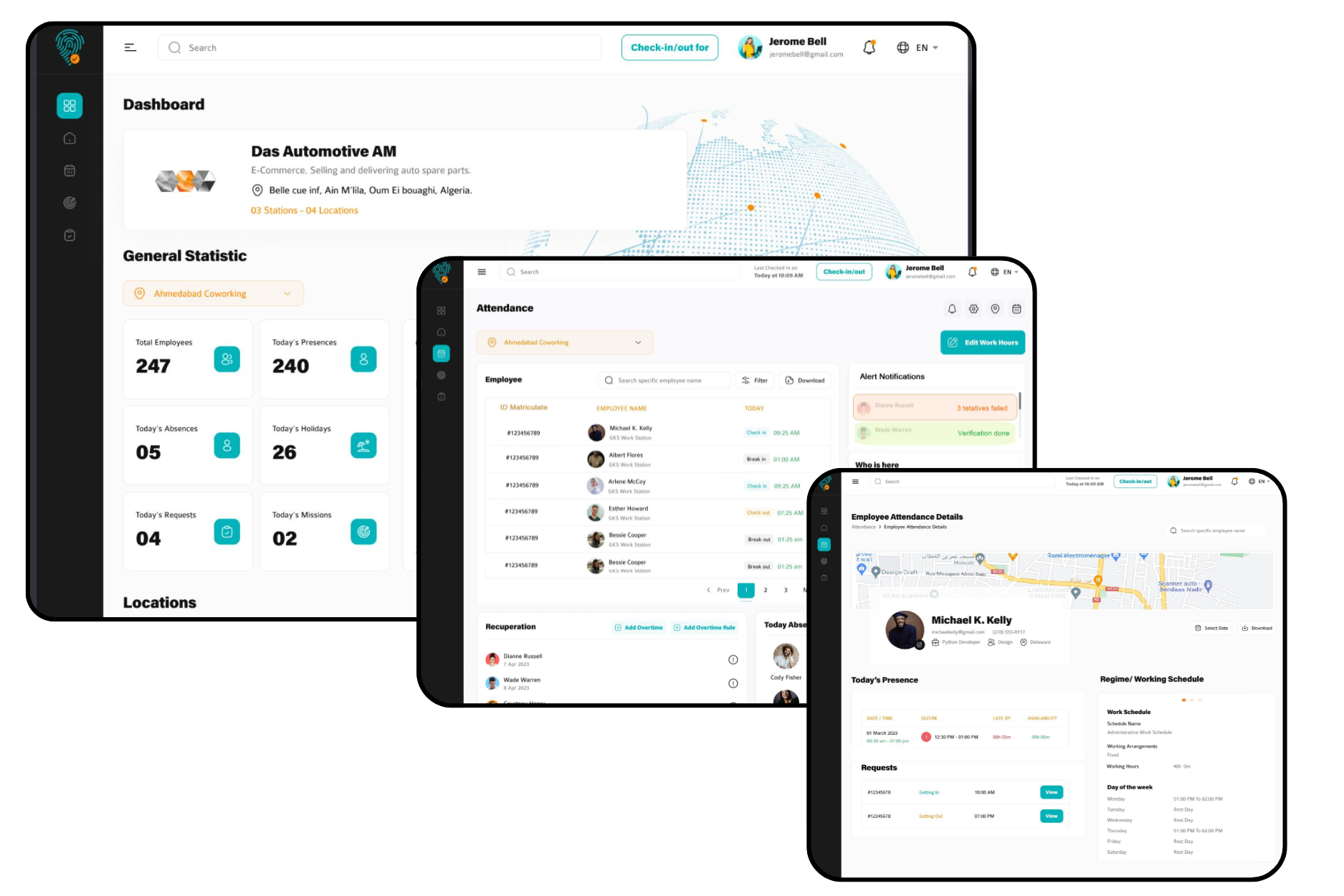 Access accurate logs of employee check-ins, check-outs, and working hours — all synced from the mobile app. This helps HR keep full control over time tracking and ensures accountability across teams.