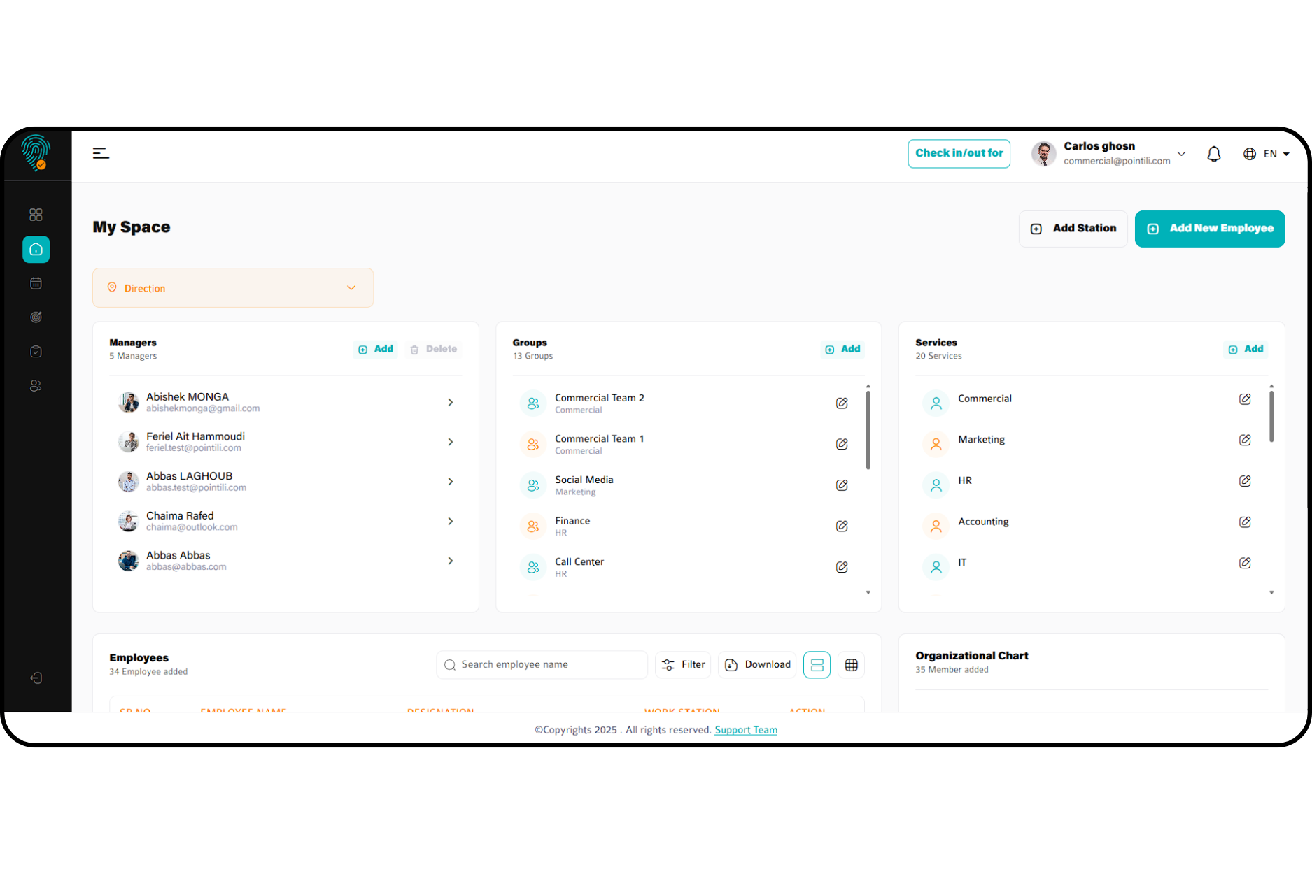 Learn MoreThe Pointili platform is designed for managers and HR teams to simplify workforce operations. Through a secure web dashboard, they can monitor attendance, manage employees, track missions, and process requests in real-time — all from one centralized interface.