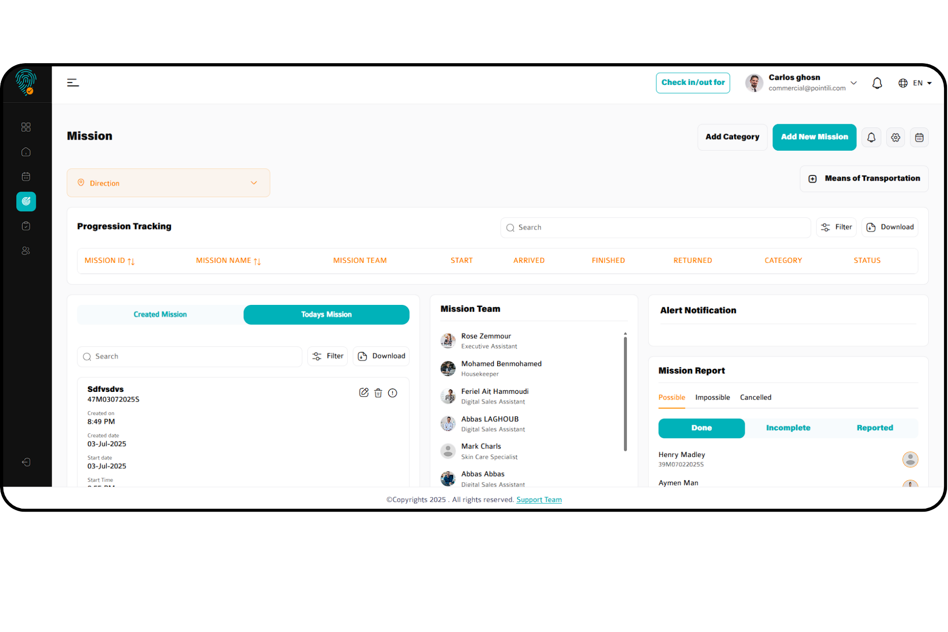 Visualisez toutes les activités — des présences aux mises à jour des missions — dans un tableau de bord intuitif. Restez informé avec des analyses en temps réel pour une meilleure prise de décision et des opérations RH efficaces.